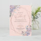 Vackra bröllopsinbjudningar för blommigt med boho wildblombouquets i skuggor av violett, lilak, lila, persika, , dammig blått och gröntar med texten från ro guld eller terra cotta och på baksidan med ett redigerbart fast färg för samordning med bröllop färger (exemplet visar en terra cotta peach färg). ÄNDRINGAR: Text- och bakgrundsinformation färger kan ändras så att de stämmer överens med färg-schemat genom att klicka på CUSTOMIZE FURTHER i avsnittet PERSONALIZE för ett anpassad design. Kontakta designern via Zazzle-Chattan eller makeitaboutyoustore@gmail.com om du vill att designen ska ändras, på en annan produkt eller om du vill ha koordinerande artiklar.