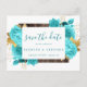 Turkos Teal Blue Aqua Guld Blommigt Spara datum Postcard-inbjudan