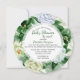 Den här moderna och trendiget Baby Shower-designen har en söt vattenfärg ram i gröntens blad och vita blommor på en vit bakgrund som omger personligen Baby Shower by Mail Call-information. Redigera bara texten i textrutorna.