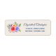 Adressetiketter med en fantasifull blommigt bouquet med vattenfärgen ro. Snyggt, viskhet och kreativ. Ett paket ro i rosa, lila och gult. Med många spritar och löv i grönt, rosa, lila och blått. Bakgrunden är en gulvit champagne färg.