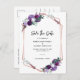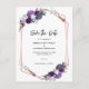 Vår geometriska samling för lila blommigt är perfekt för att skapa ett meddelande till bröllop. Med en modern svart kalligrafi, med ro guld geometriska ram på vit bakgrund, är detta perfekt för Spara datum meddelande. TIP: OSA kort, bröllopsinbjudan, Möhippa och mycket mer finns att tillgå i den här bröllop-sviten som är kantad för din bekvämlighet