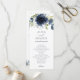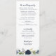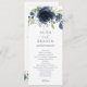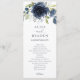 Ceremonisprogram för marinblått och Silver Blommigt Bröllop: Det här bröllopsprogrammet har en vacker vattenfärgbukett för marinblått blommigt överst. Baksidan har plats för din bröllopsfest tillsammans med ett tack eller ett minnesmeddelande i grund.