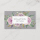 Elegant vintage stil affärskort har en bukett med muterade vattenfärgade målade blommor tryckta på rik grått papper. Ert namn och titel eller yrke visas i mitten i modern skrift på ett vitt rektangulärt inslag. Lägg till kontaktuppgifter för fullt, inklusive social-medielänkar eller -handtag, på baksidan. Ett val av chic för makeup-artister, stilist och mycket annat.