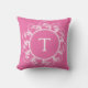 En djärv monogram och virvlar runt florally brytning som denna ljusa rosa kudder.