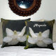 Blommigten Vit Magnolia Blommar Botanisk Mörk grön Kudde