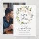 Skicka ut vackra bröllop spara datum-kort med en delikat vit vattenfärgsutandning av ro, vattendrag, blandade blommor och efterföljande blommigt. En handskriven ansikte-spådomar i trendiget ger en vacker ut namn på bruden och brudgummen. På baksidan av kortet finns en fotomall som du kan använda för att ladda upp önskat foto.
