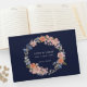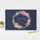 Om vi ska matcha andra artiklar i vår insamling av Blommigten Navy och Peach Watercolor Wand bröllop, har gästen bok i bröllop en persiko- och blåfärgad blommigt-andedräkt med sofistikerad marin bakgrund.