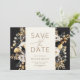 Blommigten Watercolor Black White Guld Spara datum Inbjudningar