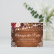 Modern Elegant Watercolor Burgundy Marsala Blommigt Ändra postpostponement Bröllop har burgundy ro, rosa ros och grönt på rustiskt trä med strängen ljus och snöre.
