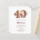 En modern, snyggt och glamorös inbjudan till en 40-årsdag. Vit bakgrund, dekorerad med en persika och lila vattenfärgad blomma. Namn är skrivet med ett modernt skript för färgaden ro guld i mörk, skrivet med stil. Anpassa och lägg till information om party. Nummer 40 skrivs med ett stil-skript med ballong. 1 lakan = 1 inbjudan tryckt kant till kant.