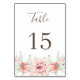Bordsnummer med vattenfärgskakti för bröllop firande. Utformningen upprepas på baksidan.