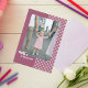 Vackra familjens Dag-kort med ett foto ram med söta små blommor på framsidan på solid rosa-bakgrund. Kortets baksida har ett vackert budskap till din familj.