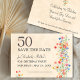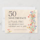 Blommigtens elegant 50-årsblomma 50 år Platt kort för annonsering. Markera denna milstolpe-födelsedag med elegans med hjälp av vår 50:e födelsedag Spara datumkortet med en delikat vattenfärgsdesign för blommigten. Det här snyggt utformade kortet lyfter fram siffran "50" i fetstil, balanserat med en mjuk, pastelliserad blommigt arrangemang på högerna. Anpassa till firmans namn och evenemangsuppgifter för att se till att gästerna reserverar datumet för detta särskilda tillfälle. Perfekt för alla eleganter och minnesvärda 50-årsfirande. Njut!