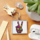 BLOMMIGTENS FREDSSIGNAL FYRKANTIG SILVERFÄRGAD NYCKELRING