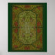 nedfläckad av blommigt i grönt och röd reproduktion poster utskrift.