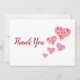 En dekorativ blommigt med flera hjärtan bestående av färgstarkt ro eller peonier på ett tackkort.
