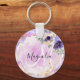 Tjocka och chic nyckelkedja med lila marmorbulimpa enmajsswitchar, guld blommigt ram med blå och persikoblommor och en rosa. Ditt eget namn och monogram är skrivna i ett skript med elegant-handskrift. Du kan ändra texten färg och teckensnittet stil och storlekt med hjälp av anpassningsalternativet.