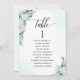 Hjälp dina gäster att hitta bord med den här eleganten blommigt med moderna platsplaner med gästerna namn. Kort på dubblans sida så att gästerna kan titta från båda, fram eller tillbaka för namn. Töm plats på ovansidan och grund ge dig friheten att använda klipp eller slå hål för hängande visningar eller hållare för använda bord. Utformning med utförliga detaljer om blommigtens hörn i vattenfärg i en vacker blandning av vita, akvariga, turkos, blått och grönt. Fintvätt av blå vattenfärg på dimma i bakgrunden. Text i svart. Modern skriftlig information om kalligrafi. En del av vår "Blue Aqua, Turquota and Grönt Blommigt Collection" med en mängd samordnande produkter, inklusive bordsnummer Card.