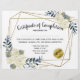 Elegant blommigt Brev storlek 8,5" x11" Certifikat för färdigställande för att tilldela personal, studenter, anställda eller vem som helst för vilken kurs, skola eller program som helst. Underbar för salon, spa, massageterapeut, naturskönhet, konsult, makeup eller feminin använda inom industrin. Anpassad design i vattenfärgsfärgad blommigt med vitt och blått och guld ramar. Visa ert pride och er entusiasm över era studenter och era medarbetares ansträngningar med detta anpassade, intyg om personlig. Lägg till din egen online och beställ anpassningsbarna för certifikat som gjorts för ceremonin. Lämna namnteckning området tomt om du vill lägga till en namnteckning senare, eller ange namn och titel och lägg fortfarande till namnteckning ovan. Honoree's namn kan skrivas in eller så kan den tomma raden lämnas för att lägga till handskriven eller utskriven namn senare.