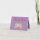 En underbar blombukett, det här tackkortet har en lila bakgrund. "Tack" är skrivet med ett stort kursivt rosa med en bukett av blommor av rosa och grönt under. Köp din idag! Blommigt Design: AMBillustrations http://www.etsy.com/shop/AMBillustrations/