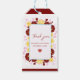 Märkrn på framsidan visar en klassisk i elegant bröllop-förmånen med anpassade namn och datum i klassisk typografi med en blommigt ram runt den som innehåller burgundi, rosa och gula blommor. Utformningen är färgstark elegant och skildrar glädjen i firande. Denna pulserande bröllopsgåva-märkre kommer att bli en oemotståndlig fråga för bröllop.