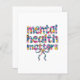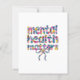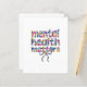 En färglös blommigt-tematisk utformning med den tydligare frasen "Psykisk hälsa". Ljusblommor fyller det fet brev, parade med ett band, symboliserar positivitet, medvetenhet och stöd för mentalt hälsa.