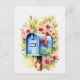 Postlådan land väntar på leverans mitt i den skrymda blomningen - vattenfärgsfluiditet.