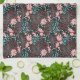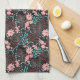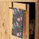 Handduk med en elegant mönster som är gjord av rosa blommor, teal löv och röda bär på mörk.