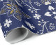 Blommönster i gult och vitt på marinblå botten presentpapper