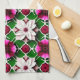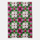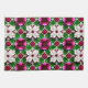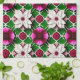 Blommönster med röda, rosa och vita blommar placerade över en grönt och vit lattice-bakgrund, skapande en modern och dynamisk designperfekt för textilier, tapet eller dekorativa tillämpningar.