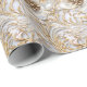 Fira ditt bröllop, årsdag, brudvisning eller födelsedag med denna vackra vita och gyllene blomsterdesign med blommande blommor med vida öppna kronblad omgivna av vackra stjälksnurror och en vit bakgrund. Detta sommar- och vårblommor inspirerade mönster är också lämpligt för decoupage-projekt. Förvandla det vanliga till det spektakulära med detta tidlösa och eleganta presentpapper.