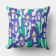 Det här ljusa och färglösa dekorativ kudde har en abstrakt mönster av allas favoritträdgårdsblomma, den skägrade iris. Färg som används i mönster är blått, mjuk grönt, guld och vitt. Modig, modern och fullt av färg! Båda sidorna av kudden har samma utformning.
