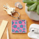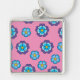 Blommönstret Blue Violet Rosa Fyrkantig Silverfärgad Nyckelring