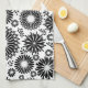 Blommönstret Boho-blommor, svart och vitt Kökshandduk