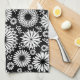 Blommönstret Boho-blommor, svart och vitt Kökshandduk