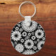 Blommönstret Boho-blommor, svart och vitt Nyckelring