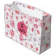 Färgfull Snyggt och elegant återbildande av vintage rosa blomma mönster över vit bakgrund för botaniska växter och älskare på färgstarka söta presentsäckar för födelsedag och vintertid 2022 presenter för familj och vänner. Den här designen är personlig och du kan anpassningsbar att lägga till namn och initialer brev med hjälp av en dekorativ kalligrafi och enkel personlig monogramtypografi inuti en rosa geometrisk formcirkel.