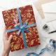 Blommönstret Brown-Red och Shiny Guld Damask Presentpapper