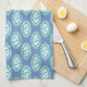 En chic Kitchen Towel eller Tea Towel, med mönster av blå Periwinkle-blommans motiv i en dekorativ sexhörning på en blå bakgrund. En del av samlingen "Periwinkle Patch" för Posh och Painterly.