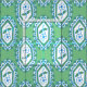 En väldigt söt Fabric, med en mönster av Blå Periwinkle-blommans motiv på White, inom en dekorativ sexhörning, allt på Gröntens bakgrund.. En del av "Periwinkle Patch"-samlingen Posh och Painterly kan lätt justeras för att passa vilken struktur som helst i mönster.