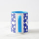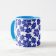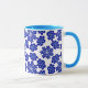 Snyggten mugg har en fängslande visning av blåondskefulla öga-karmer, som på ett vackert sätt har utformats i ett komplicerat blommönster. Om du vill ha speciella förfrågningar eller förfrågningar kan du kontakta konstnären på wafadahdalcreates@gmail.com. © Wafa Y. Dahdal - Med förbehåll för alla Höger. WD Art