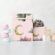 Cute mönster, som består av en sovande pandabjörn som är gift på en rosa blomma, bin, drakflugor och måne. Perfekten för en babyduschgåva eller flickfödelsedag.