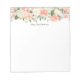 Ett band med vackra blommigtar med vattenfärg sträcker sig över det femininska anteckningsblockets övre gräns. Färg omfattar persika, rosa och benvit med blandat löv och grönaktig spridning genom hela kroppen. Om du vill anpassa det här anteckningsblocket infogar du ditt namn eller annan önskad text i ställe i den exempeltext som visas. Du kan också ta bort exemplet namn om du föredrar objektet utan text.