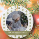 Modern Family Photo Blommönster jul Ceramic Ornament. Stort och modern design med en grönt enkel blomma mönster. Lägg till fotot och namn och gör en söt keepy för en familj.