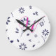 Blommönstret Monogram Blue Watercolor Rund Klocka