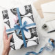 Papper omslutning av Monogram G-Blommönstret för inledande svartvitt kan anpassas med en bild, namn, text, logotyp eller foto. Byt vit bakgrund till en blå nyans, grönt, gult, orange, rosa, röd, brun och lila. Underbar för att stänga jul-, födelsedag-, babydusch- eller bröllopsgåvor.