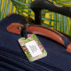 En bagagetod i snyggt har en mönster av tropiska växter och rosa blommor och din chic har ett första monogram på framsidan och dina adress-uppgifter på baksidan ELLER välj stil som du kan infoga affärskortet på baksidan. Skapa dig själv eller ge som gåva. MATCHING-dragsträngssäck och fler artiklar i vår resesamling.