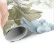 Den här designen har en vintage-inspirerad blommigt arrangemang med ro, peonier och delikat löv i mjuka pastellnyanser av blått, persikor, grädde och grönt. Den förfinade, detaljerade och balanserade sammansättningen framkallar en tidlös elegans, som blandar klassisk botanisk charm med en mjuk, romantisk vibe.