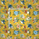 Söt blommigt med ett blommönster som fångar öga i en stark senapsform med återblommor i , koralle och blått med massor av blått och grönt löv och blek.