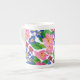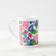 Blommönstret rosa, rött och blått, vitt benporslin mugg